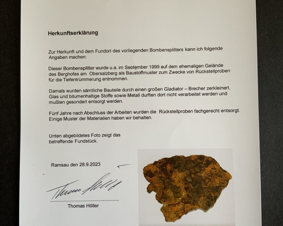 The “ time capsule “contains small pieces recovered from the Berghof foundations in Obersalzberg / Berchtesgaden. included fragments of bricks, scraps of mortar / concrete, garage […]