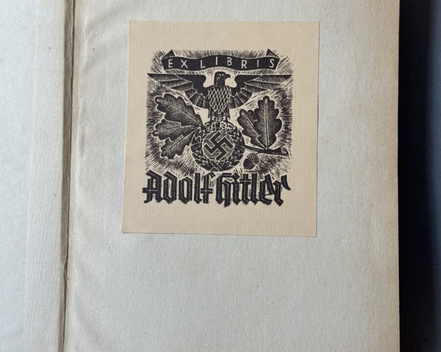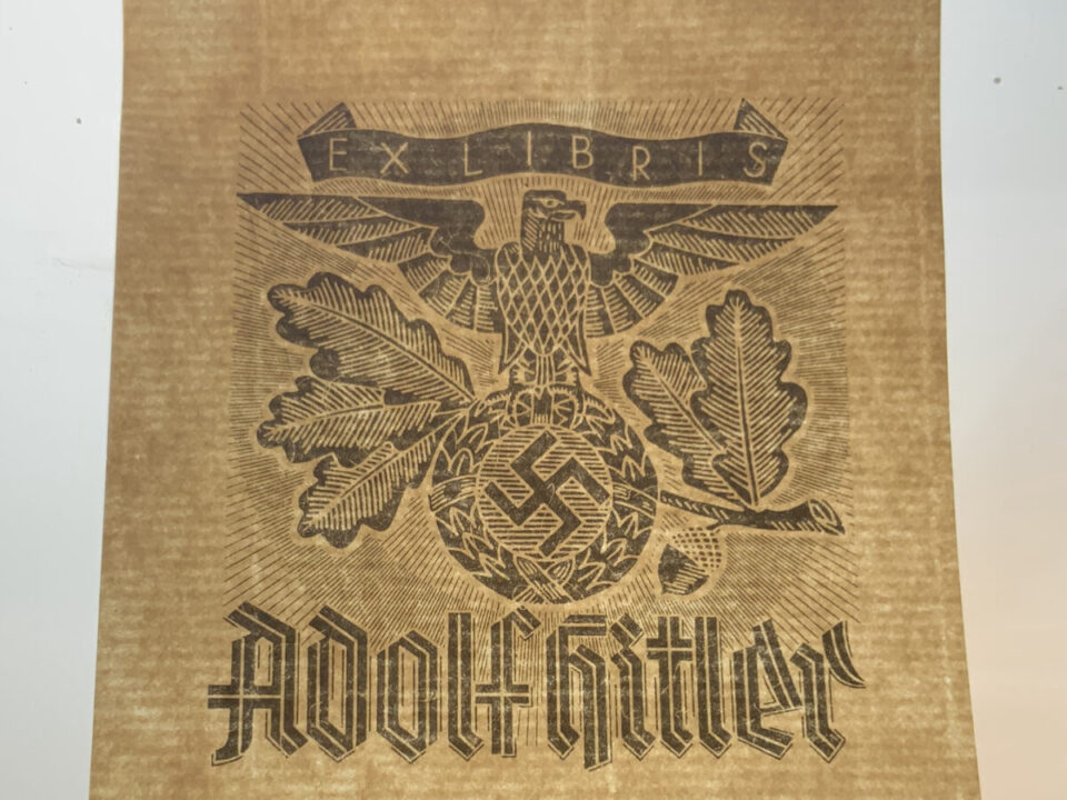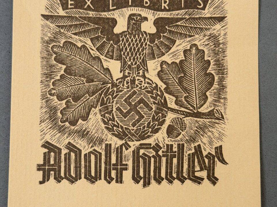 Adolf Hitler personal library book-plate, 8×8 cm, reading: “Ex Libris Adolf Hitler” (“From the Library of Adolf Hitler”). The bookplate bears a monochrome image of an […]