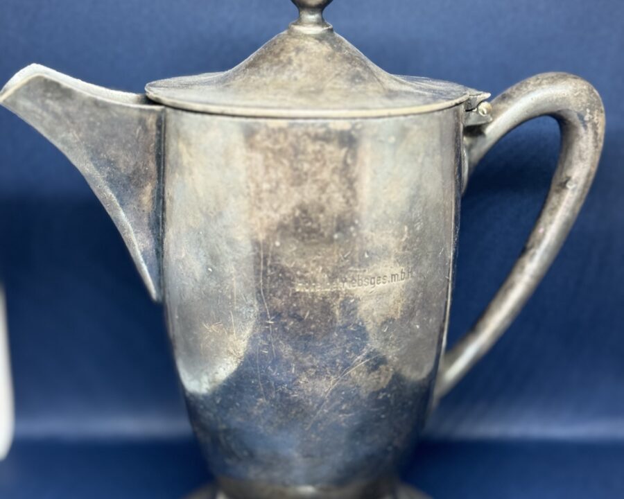 Silver cup from the Deutsche Hof Hotel in Nuremberg. This served as Hitler’s hotel and headquarters for the Nuremberg party rallies and became synonymous with Hitler. […]