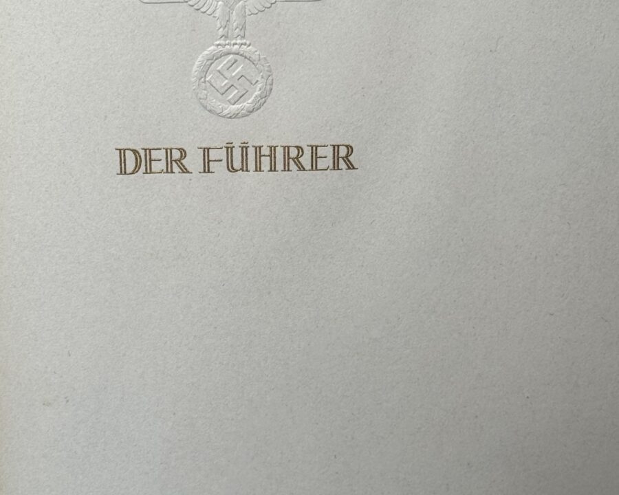 SOLD,SOLD,SOLD Adolf Hitler’s personal library book removed from the Berghof by a local resident after the war. The first page bears the label Ex libris in […]