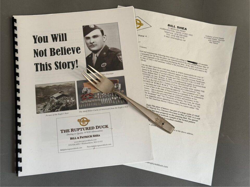 Adolf Hitler Fork Fish formal pattern removed from Eagle’s Nest May 1945 GI Clarence Overman joined the 506th Parachute Infantry Regiment of the 101st Airborne. During […]