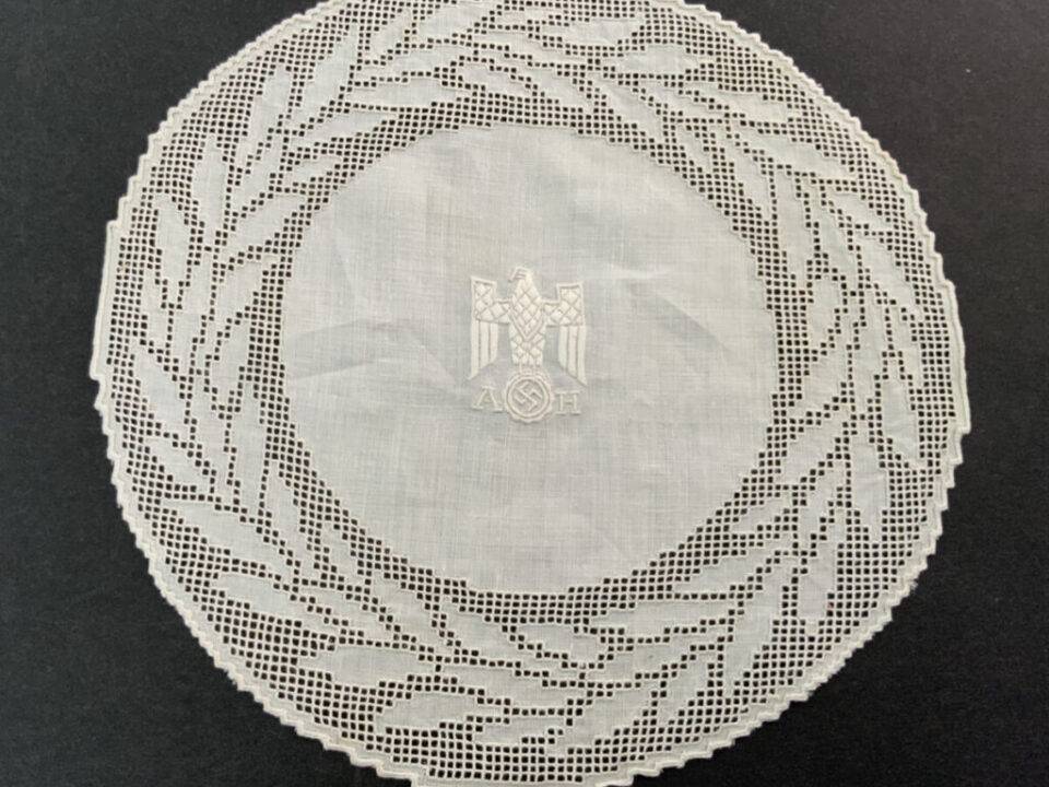 For sale is one of Adolf Hitler’s personal informal linen tablecloths with his embroidered monogram. The cloth measures 100 x 109 cm in size. The pattern […]