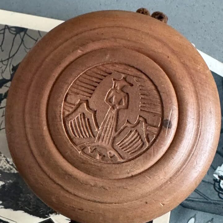 A small white,muslin tablecloth that shows a swastika in the center, surrounded by the Grecian Key motif.This shows just slight age toning but is otherwise excellent. […]
