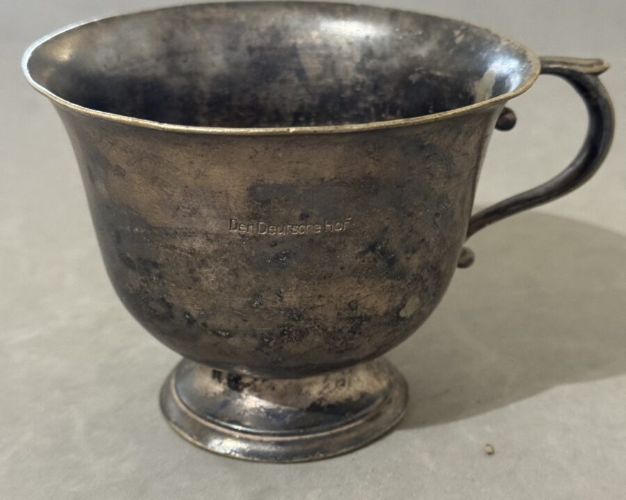 Silver cup from the Deutsche Hof Hotel in Nuremberg. This served as Hitler’s hotel and headquarters for the Nuremberg party rallies and became synonymous with Hitler. […]