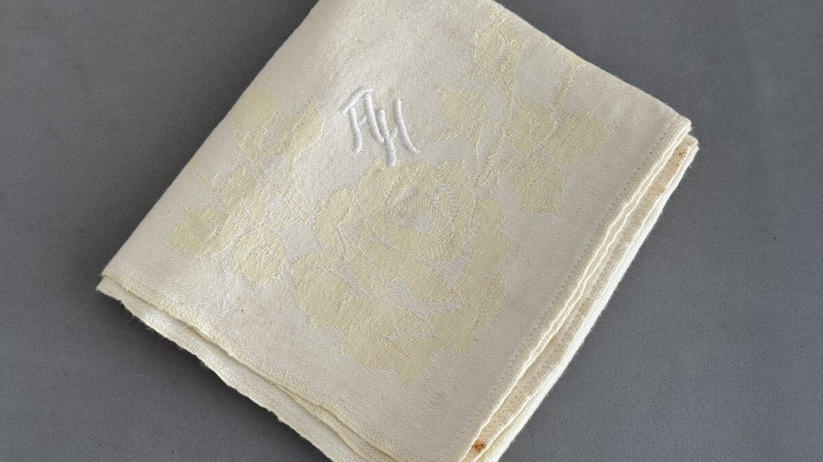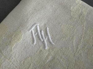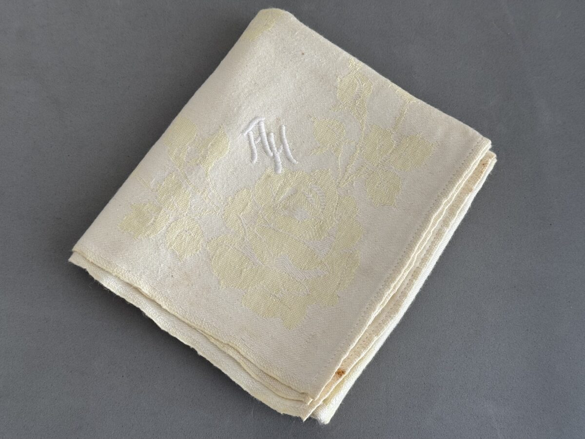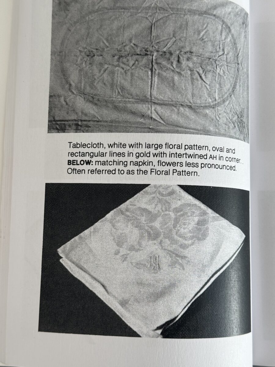 SOLD,SOLD,SOLD Adolf Hitler floral pattern napkin from the Berghof, measures 58 x 58 cm. The napkin is covered in Dr. Griffith’s book Liberated Adolf Hitler Memorabilia.