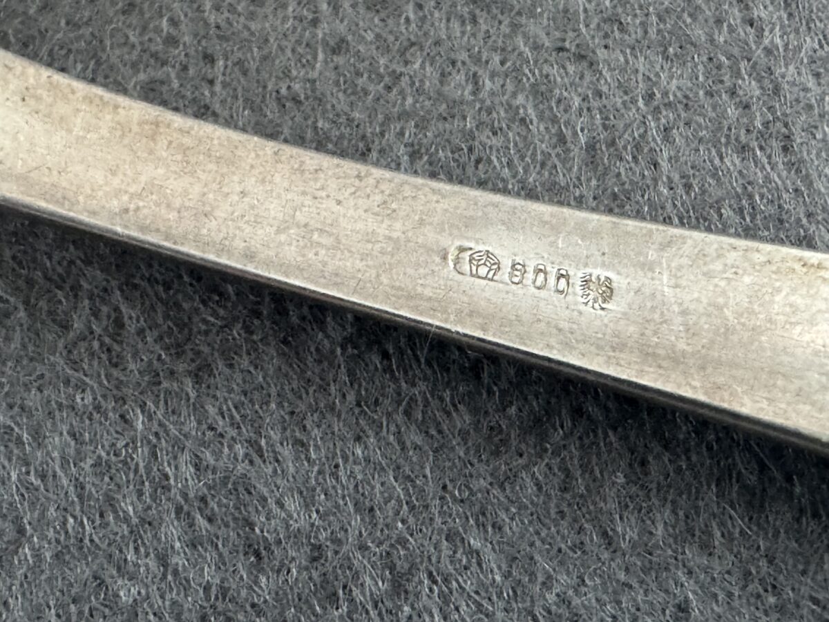 The backside of the handle is hallmarked with the Bruckmann markings, being a crescent, an Imperial crown, “800”.