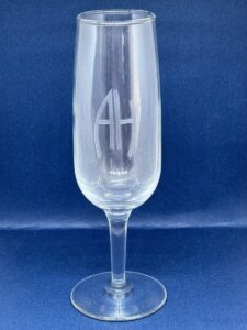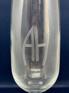 SOLD,SOLD,SOLD Rare wine glass removed from the Berghof by local residente in April 1945.This wine glass measures 18 cm tall high having the special etched AH monogram on the center surface. The etch is the style where the lines are all separately included in the etch.
