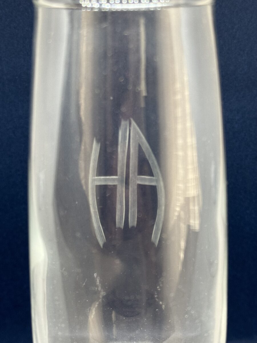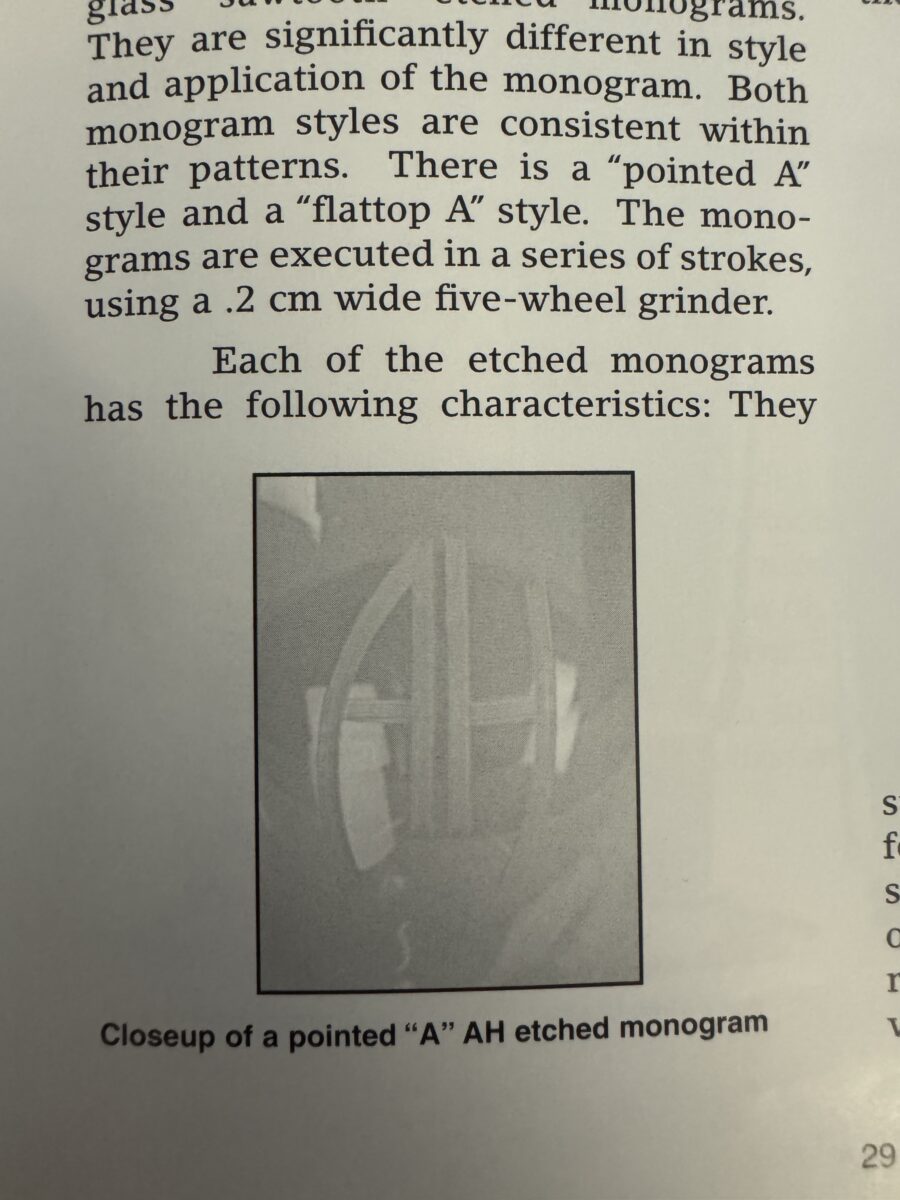 SOLD,SOLD,SOLD Rare wine glass removed from the Berghof by local residente in April 1945.This wine glass measures 18 cm tall high having the special etched AH monogram on the center surface. The etch is the style where the lines are all separately included in the etch.