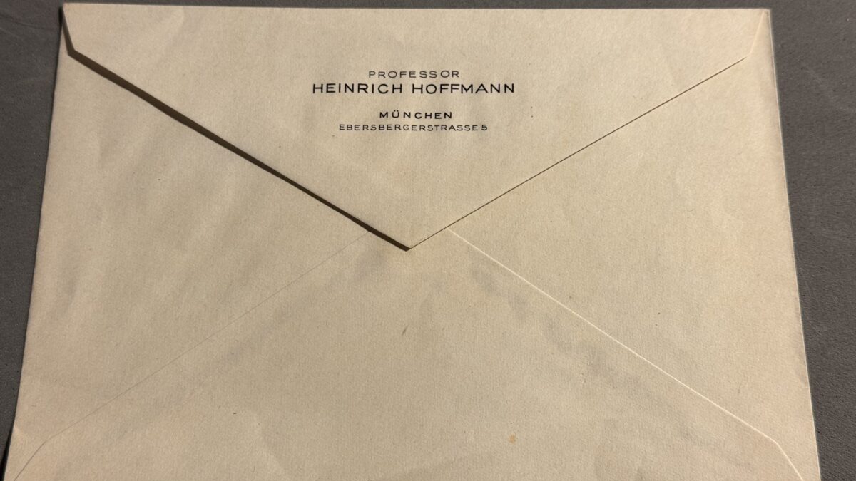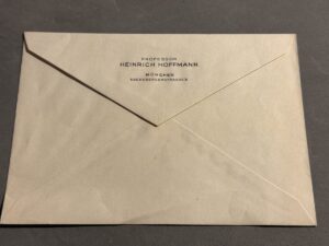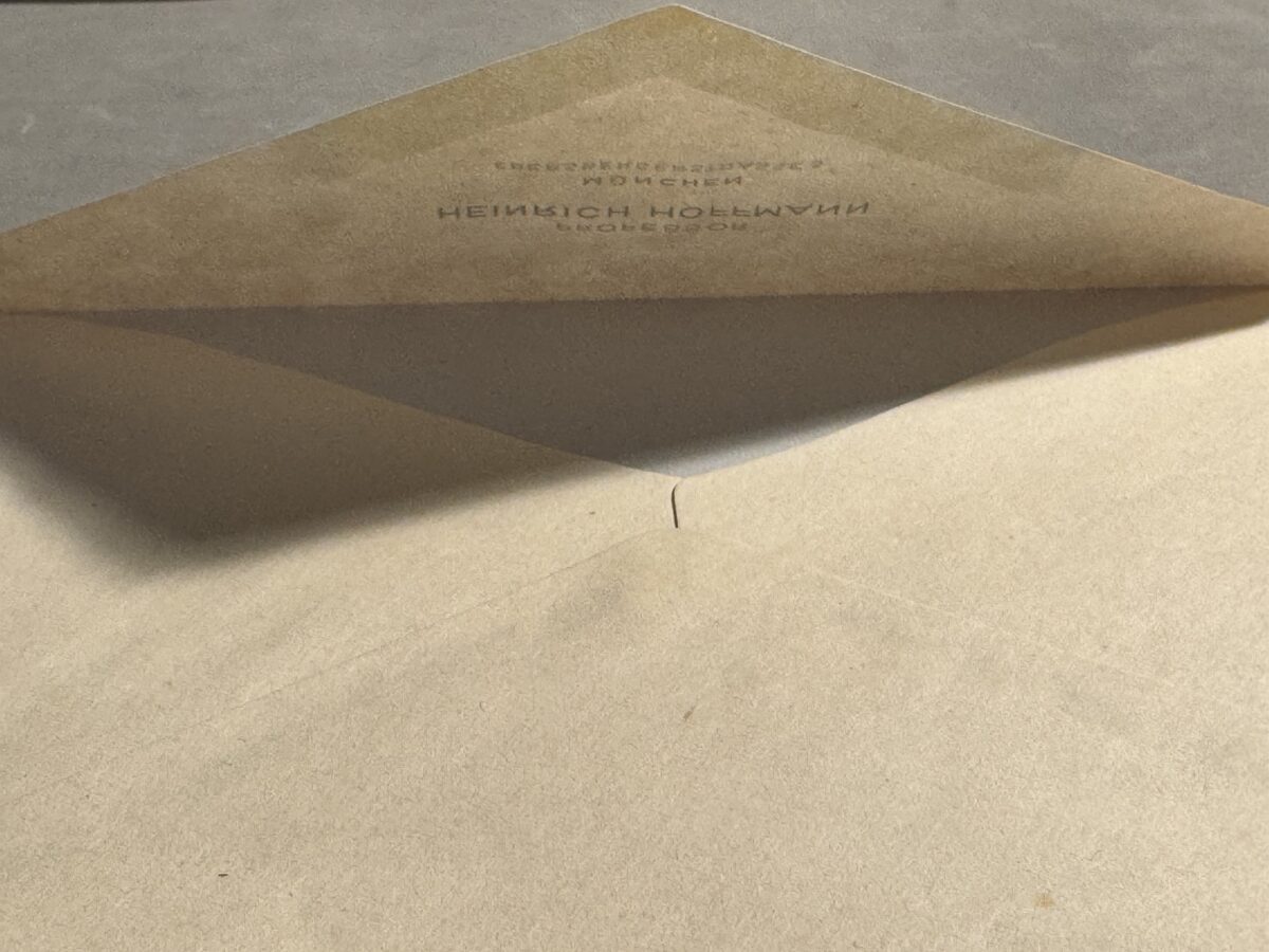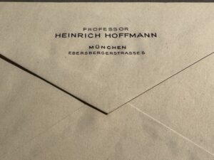 Heinrich Hoffmann was Adolf Hitler’s good friend and personal photographer, the man who hosted an early NSDAP office on Schellingstrasse in München. This is original Third Reich envelope with the residential address of Professor Hoffmann on the back flap, Ebersbergerstrasse 5 in Munich.