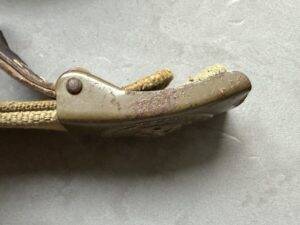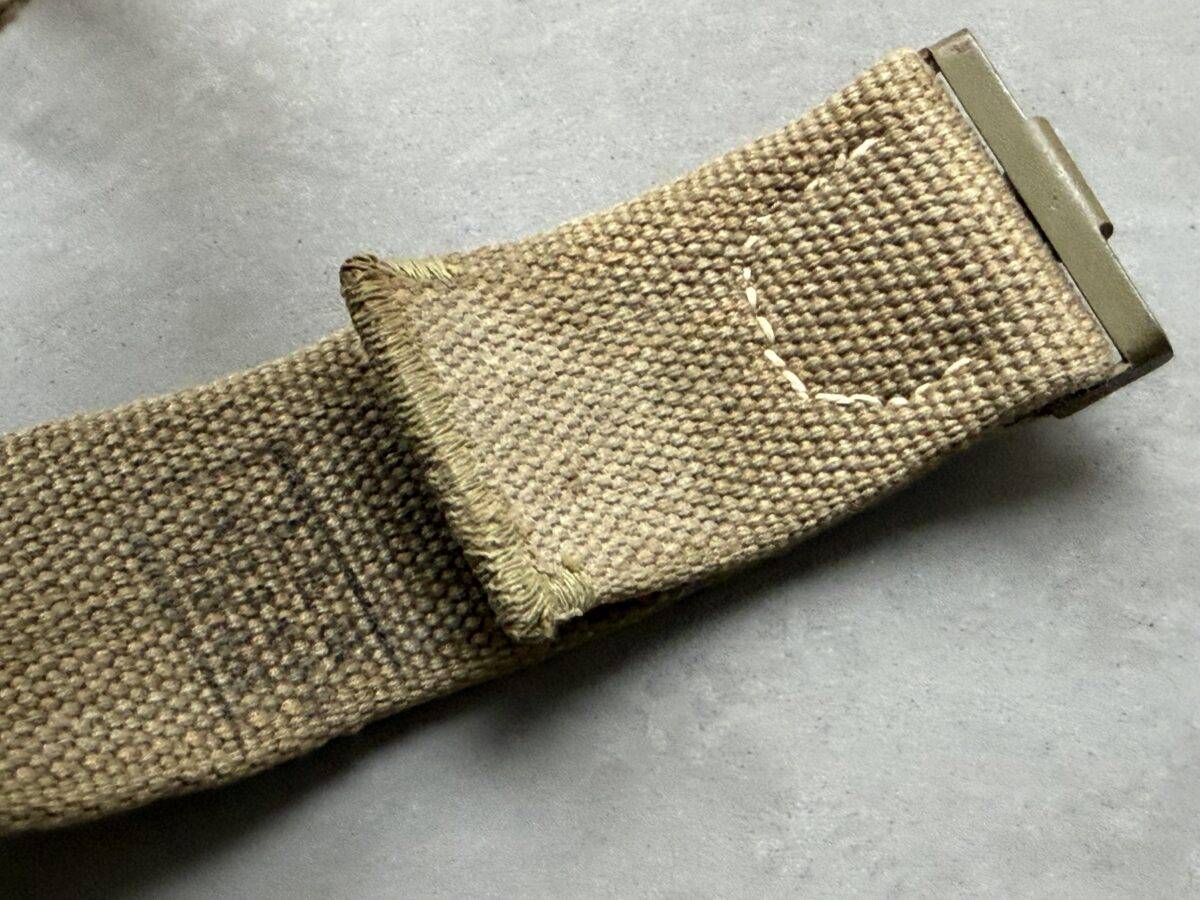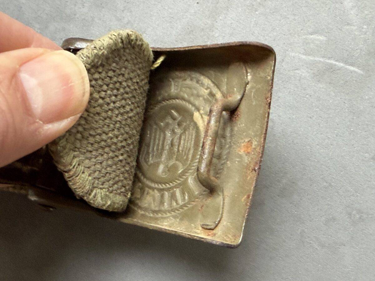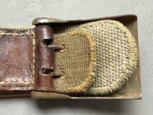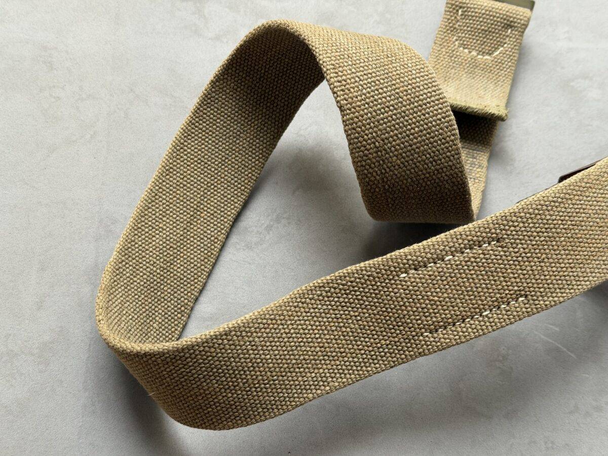 Rare Wehrmacht belt in tropical version in canvas, used by the soldiers of the Deutsche Afrikakorps, the Southern front and the Mediterranean front. The webbing belt is approximately 85 cm long and is accompanied by a green Heer buckle with leather flap 1940”. Rare set and in very good condition.