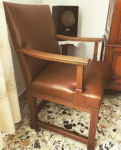 ON HOLD,ON HOLD,ON HOLD After the complex on the Obersalzberg assumed much greater importance in the Third Reich government, Hitler decided to build a second government seat in the Berchtesgaden area. This second Reichskanzlei (Reichs Chancellery) building and complex was built in 1936-37 in Stanggass, just northwest of Berchtesgaden. This Berchtesgaden Kanzlei was surrounded by a small complex of staff and security buildings, and served as a diplomatic center. The U.S. Army took the site over in 1945, and it served as the headquarters for the Berchtesgaden Recreation Area and Armed Forces Recreation Center until 1995. This chair was removed, along with several chairs and other furniture items, from the Berchtesgaden Chancellery at the end of the US occupation. On the base is the label with the official catalogue details attesting to it’s ownership by the United States.