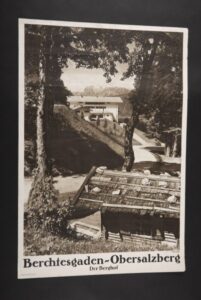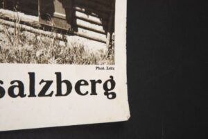 “Berchtesgaden- Obersalzberg- Der Berghof” – original poster of Adolf Hitler’s Mountain retreat. View of the pathway leading to his new home with the mountains in the background. Taken from a photo by “Zeitz” and printed by “Bruckmann”. Dimensions 51 x 75 cm.