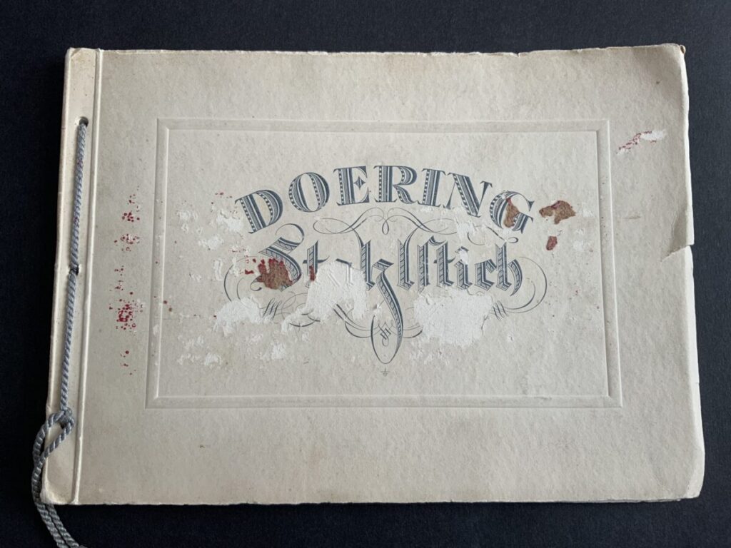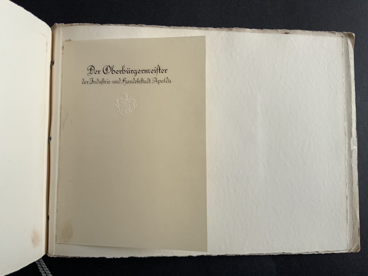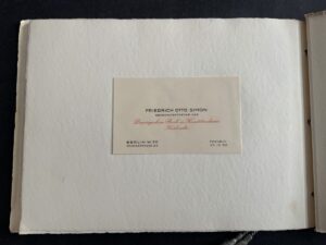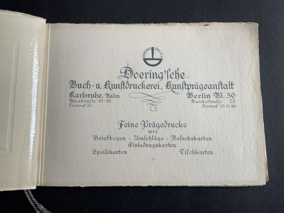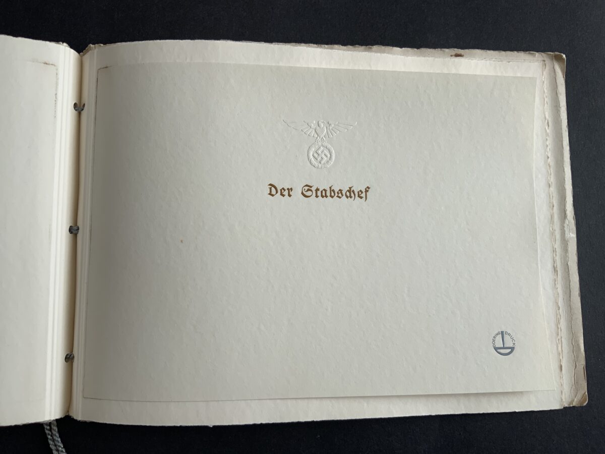 “This booklet was produced by the printing and stationery firm, Doering. It contains samples of all the main personal and Party stationery that were created for Hitler and other key party members. Most notable is an example of Hitler’s ‘Ex Libris’ bookplate, which appears on the first page — and has been signed/approved either by someone in the Party, or at the Doering firm itself. Also included are examples of Hitler’s own personal letterhead, for each of his three main residences: Berlin, Munich and Obersalzberg. “