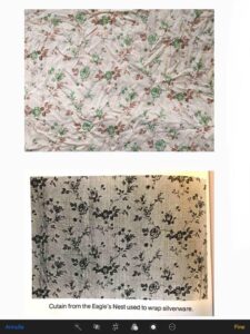 This is the exact curtain featured in Dr Mark Griffith’s book Collector’s Guide to Liberated Adolf Hitler Memorabilia. It was used to wrap a haul of AH silverware taken from Hitler tea house.The curtain itself is made of a thin almost net curtain-like material.