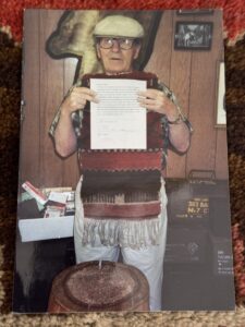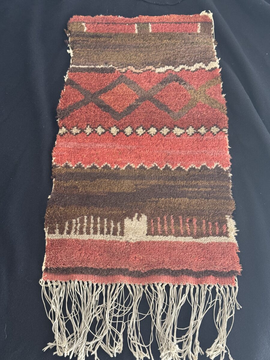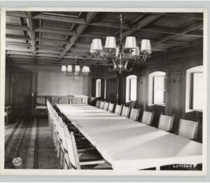 After its capture in early May 1945, the Eagle’s Nest was quickly plundered by French and US troops, eager to grab a prized souvenir of Hitler’s infamous teahouse. By May 8, just the furniture and fittings remained. Testament to that is this large chunk of the carpet or rug used in the main dining room – removed by a Captain in the 63rd Infantry Division. The exact pattern of the rug is visible in period photos, even down to the tassels. Accompanying the carpet piece is a signed letter by the veteran, along with a photo of him holding this exact piece. “We located the Eagle’s Nest which was Adolph (sic) Hitler’s retreat. The upper level of this structure had an elevator that was not functioning due to intensive bombing. My men and I made a precarious climb to the upper level to look around. The structure was in bad shape; partially burned and had been heavily looted before we got there. There wasn’t much worth taking except for the beautiful carpet in Hitler’s sitting room. I cut this piece of carpet using my trench knife as I figured it would make a nice souvenir of Hitler’s Eagle’s Nest” Interesting how he describes the Eagle’s Nest as being partially burned, as this was not the case. In fact, aside from looting, the building remained perfectly intact. While the carpet piece was certainly removed from the Eagle’s Nest, I suspect the veteran also visited the smouldering Berghof and, over the years, the memories faded into one.