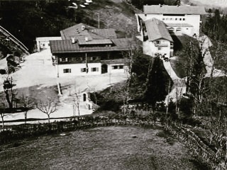 In the late 1920s the Türken found itself in the unenviable position of becoming Adolf Hitler’s neighbor, when he rented and later bought the adjacent Haus Wachenfeld for his home. Karl Schuster was a somewhat outspoken critic of the Nazi takeover of the Obersalzberg, since this ruined his business, and he joined the majority of his neighbors who were forced to sell out to the Nazis and leave the area in late 1933. The building was first used by the SS-Führerleibwache, Hitler’s personal bodyguard. Martin Bormann, manager of the Obersalzberg, later assigned the building to the Reichssicherheitsdienst (RSD), the high-level Security Service responsible for Hitler’s safeguarding. In practice, the ex-hotel served as a headquarters for the round-the-clock SS guard detachment, and also as a telephone communications center.