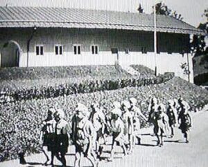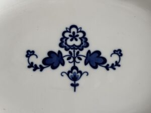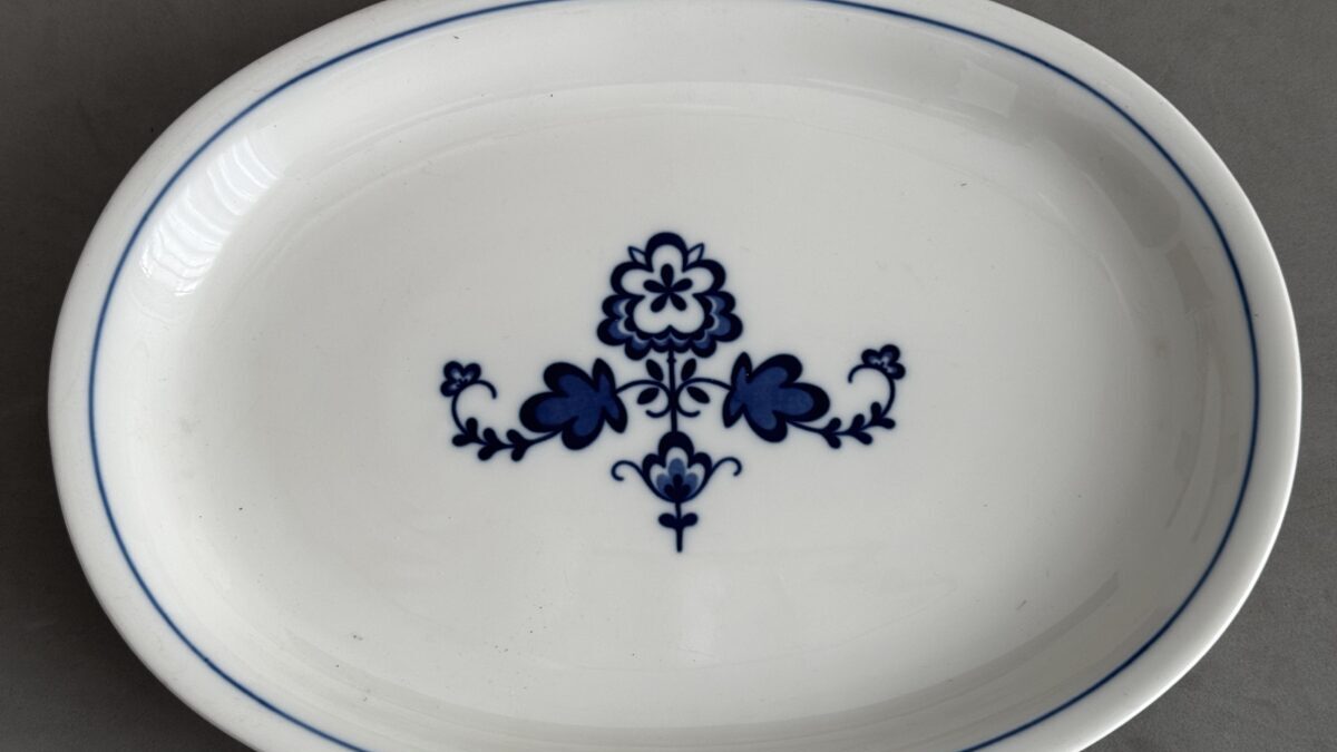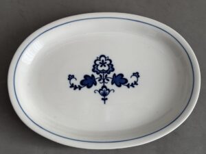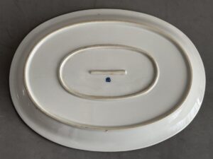 Porcelain plate from the Obersalzberg Kindergarden, measures 36 cm.In 1940 saw the construction of a large building to preserve the architectural models behind the Hotel zum Türken.This building is best known as the nursery, as it served this purpose for the Obersalzberg families residents and staff.These porcelains have a long history, called “settler dishes”, originally designed by the RSHA to equip the hereditary farms and commissioned by Allach-Bohemia.Due to the war, it was not widely used, but was used in the NSV children’s home on Obersalzberg.