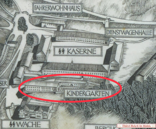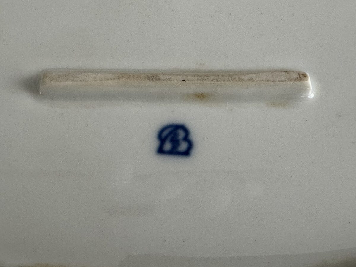 Porcelain plate from the Obersalzberg Kindergarden, measures 36 cm.In 1940 saw the construction of a large building to preserve the architectural models behind the Hotel zum Türken.This building is best known as the nursery, as it served this purpose for the Obersalzberg families residents and staff.These porcelains have a long history, called “settler dishes”, originally designed by the RSHA to equip the hereditary farms and commissioned by Allach-Bohemia.Due to the war, it was not widely used, but was used in the NSV children’s home on Obersalzberg.