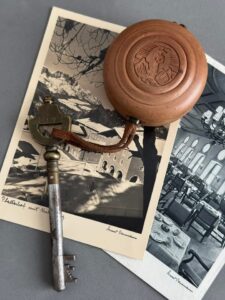 The Judith Platter motiff on the elaborate hook for the room door keys.