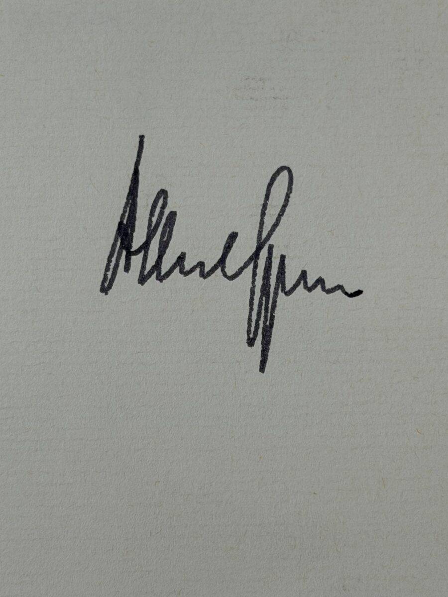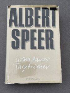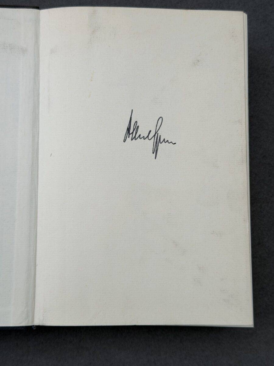 A hardcover copy autographed by Albert Speer from the German edition of "Spandauer Tagebücher." The signature is on an inside page in black ink and is in very good condition.